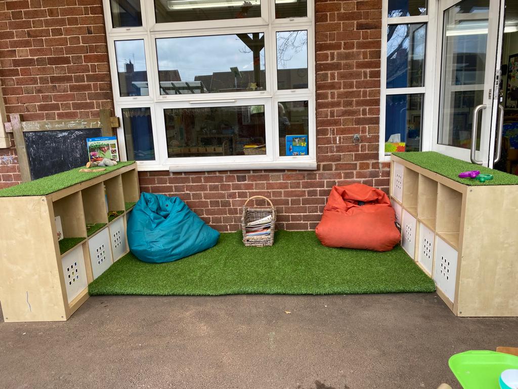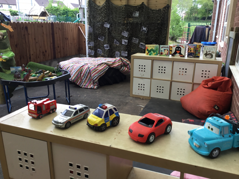 The Butterfly children  spend alot of time outside.  They enjoy planting, watering and watching things grow in the garden, using the diggers in the digger area, playing in the water tray, making marks and drawing in the literacy shed, listening to a story in the cosy area, making mud pies in the mud kitchen and playing on the climbing frame, slide and in the sand pit.  Activities are also planned for them in the woodland too, including weekly forest school sessions led by fully qualified forest school leaders.