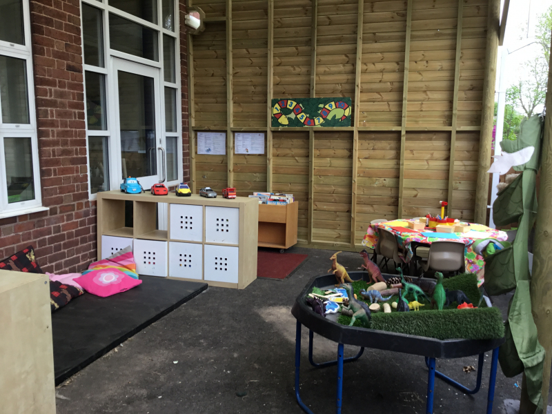 The Children in the Butterfly room have direct free flow access to the outdoor classroom. The outdoor classroom provides opportunities for messy play activities to take place and allows the children to have plenty of fresh air  and the chance to be outside whilst being sheltered from certain weather conditions.