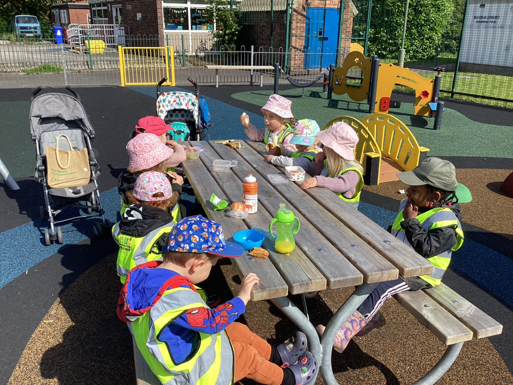 After our visit to the library, we also have the exciting opportunity to visit Weaverham park, where we get to climb, swing, and slide and eat our snack.